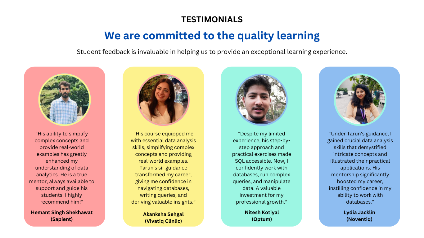 SQL Mastery: Foundation is a comprehensive course that covers all the necessary concepts of SQL, from basic to intermediate. The Course is ideal for beginners who want to learn about SQL or professionals who want to upskill their skills in SQL. This course covers the relational database concepts along with SQL functions that are used to query and manage databases.